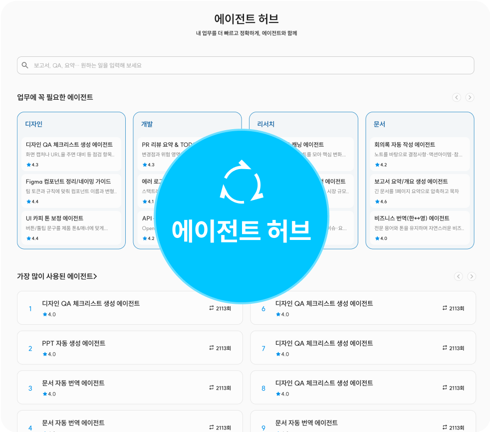 처리할 수 있습니다. 복잡한 절차 없이 생성된 결과는 개인을 넘어 조직의 자산으로 축적됩니다.대화형 업무 처리